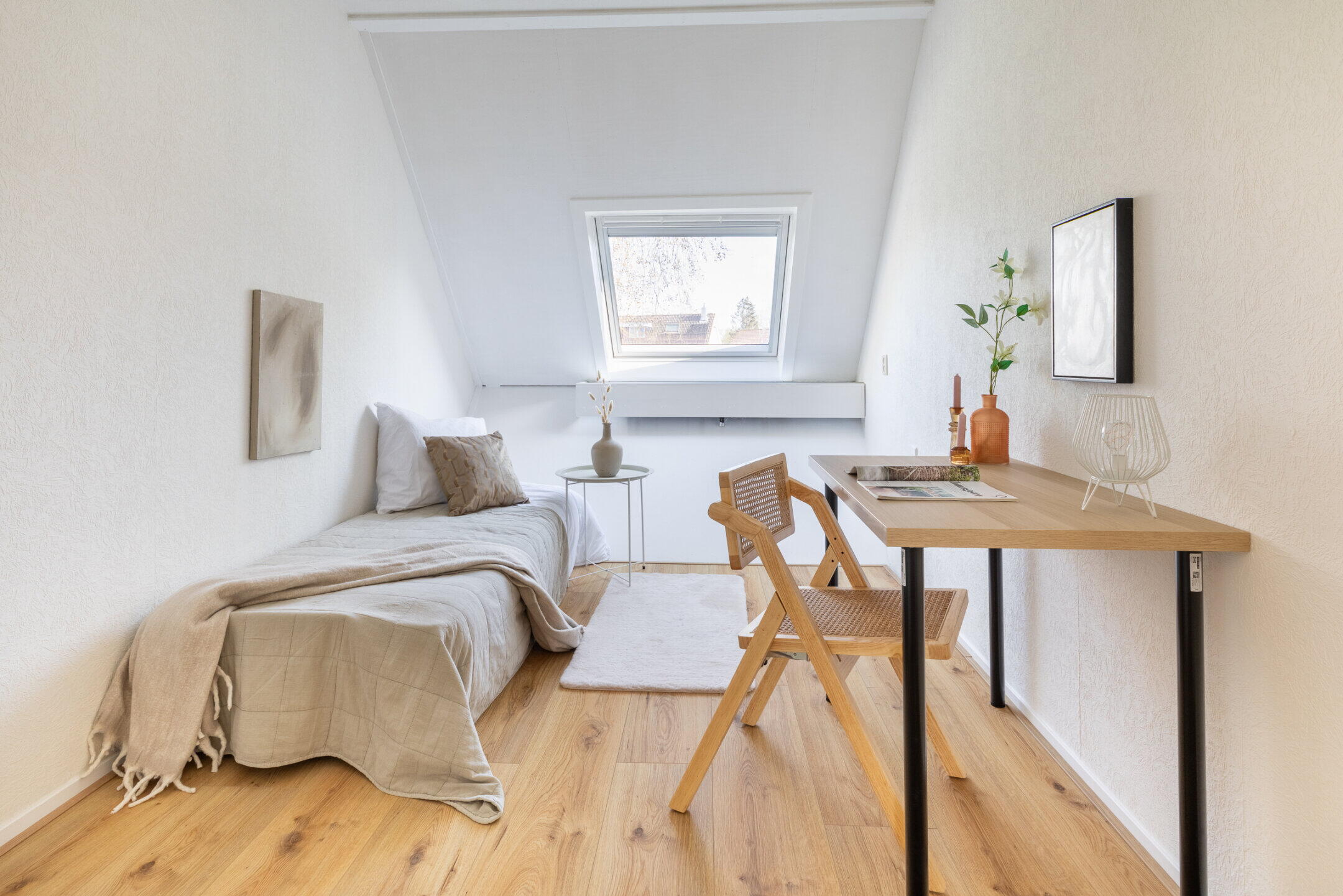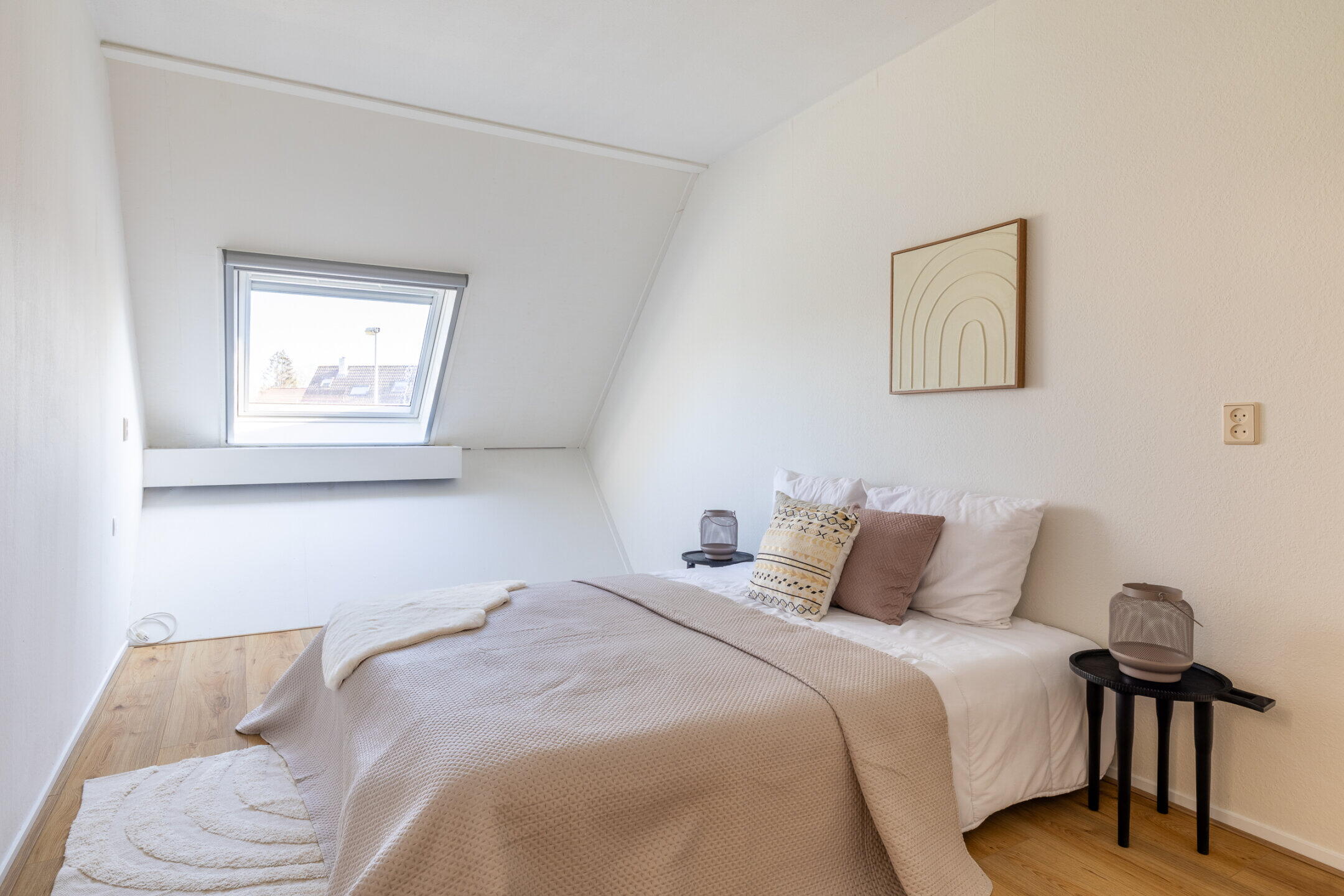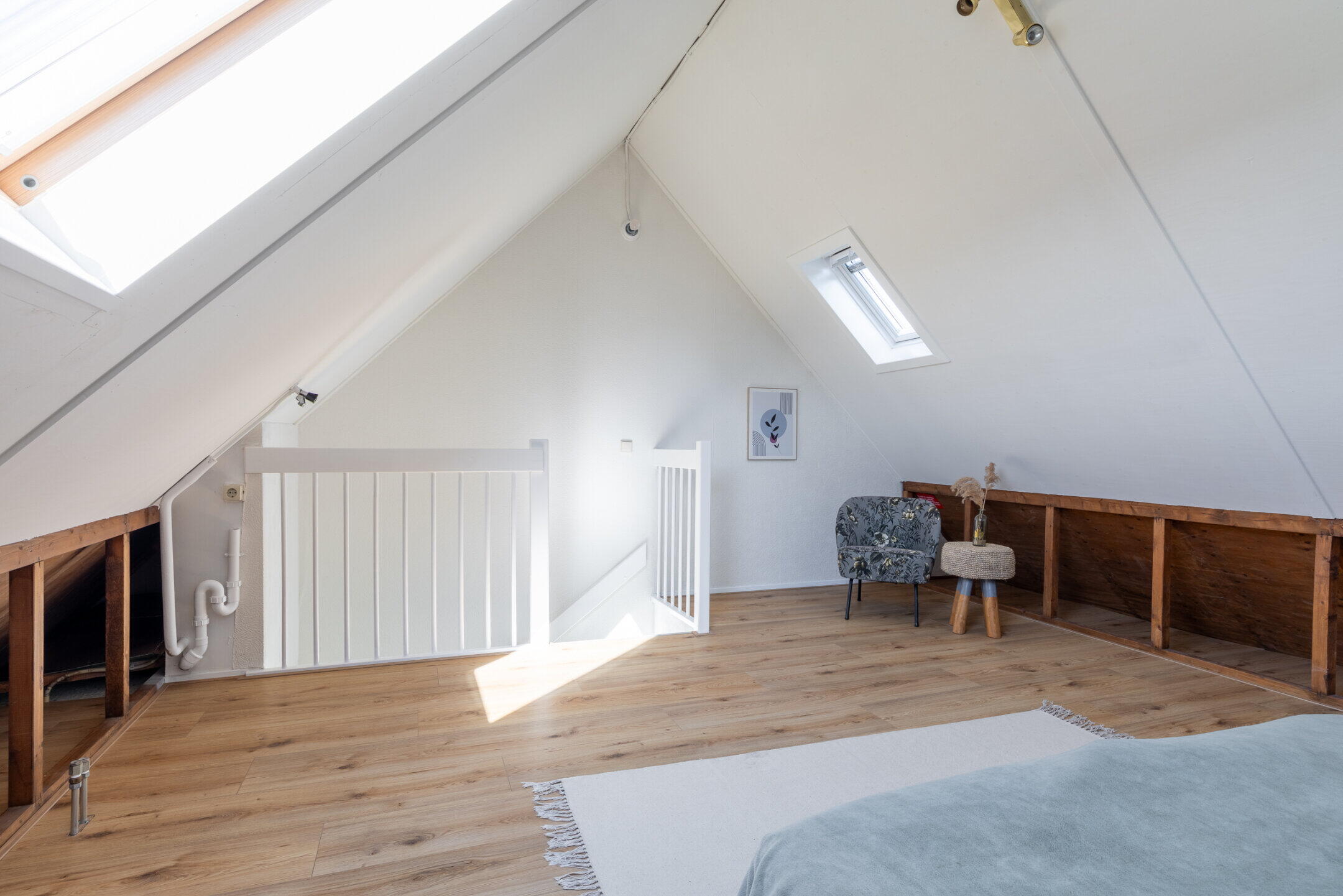 De ruime slaapkamers zijn voorzien van een nette (nieuwe) laminaatvloer, forse dakramen en mechanische ventilatie.
