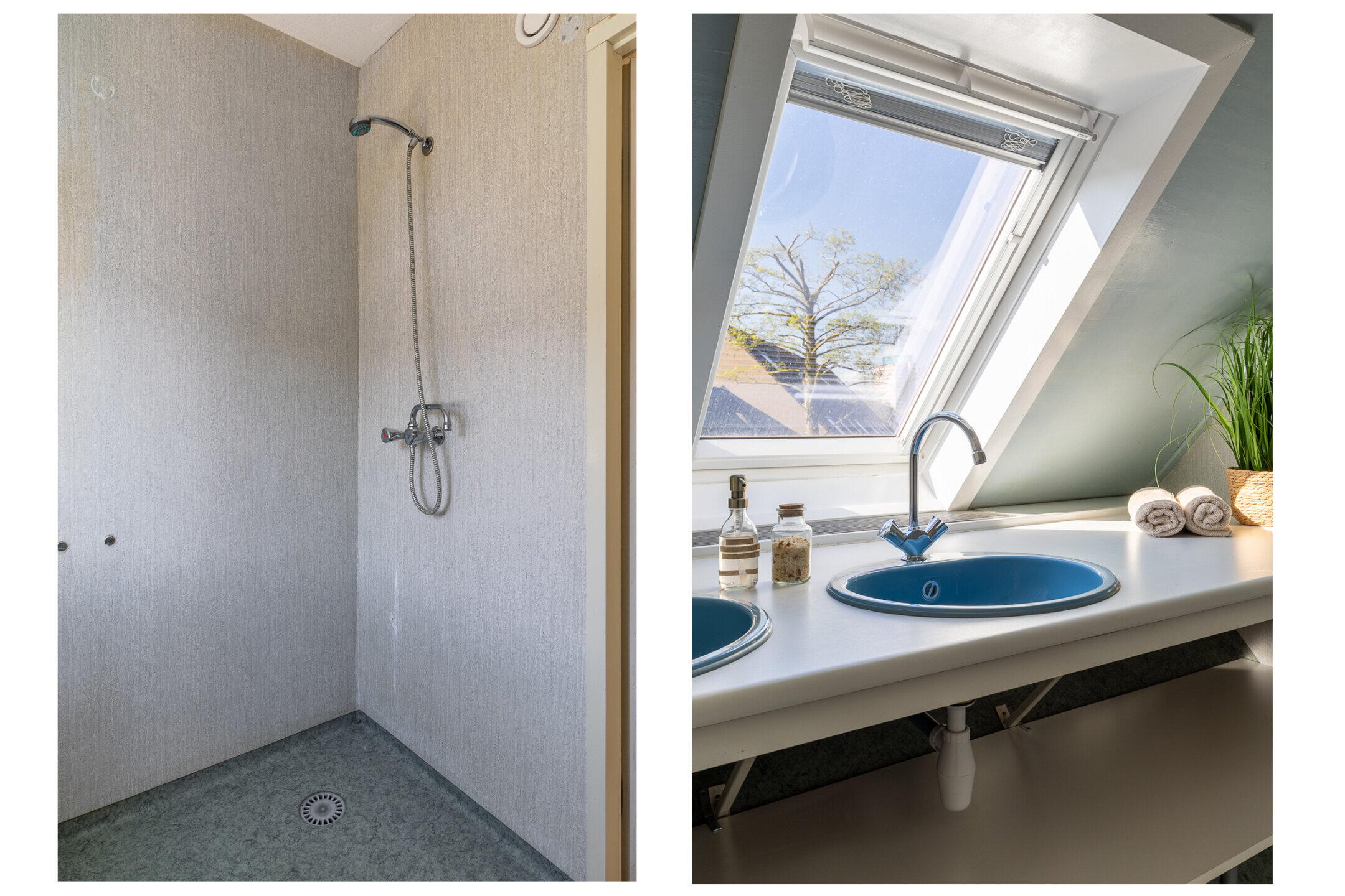 - Douche, dubbele wastafel, wastafelmeubel