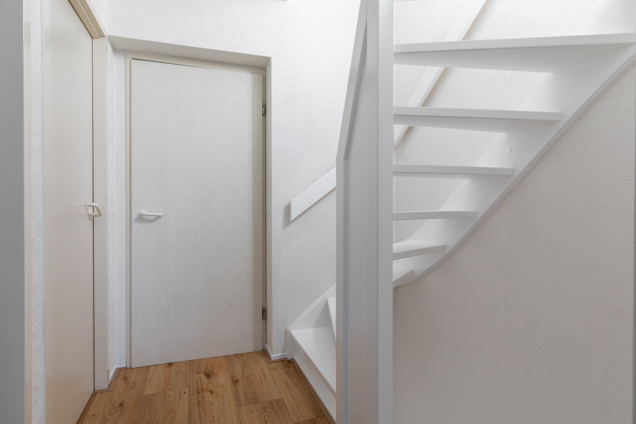Overloop (ca. 2.29 x 1.99m) met de trapopgang naar de tweede verdieping en toegang tot 3 slaapkamers en de badkamer.